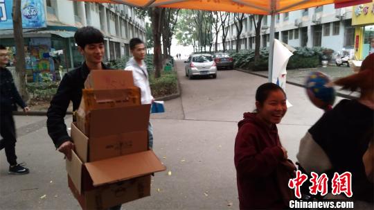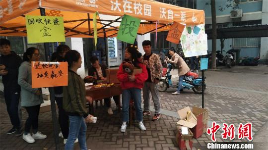 ????為調動學生的參與度,該活動實施過程中還設置了抽獎環節。只要拿著快遞盒子前往站點便可獲得抽獎機會,獎品大到毛絨熊,小至糖果等。
