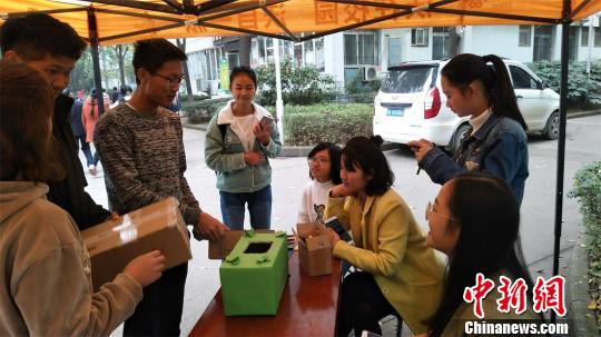 ????中新網武漢11月22日電 (肖守嬌 葛揚陽 楊潔)“雙十一”后的快遞包裝紙、包裝盒如何處置?武漢華夏理工學院學生想出一個妙招:把快遞盒回收改造成禮品盒、收納盒、貓窩、垃圾盒等創意物品,再免費提供給學生使用。