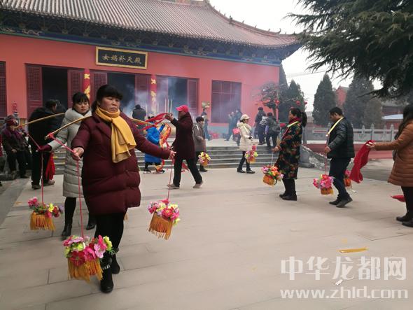 耿寶山所說的“歷久彌新”很容易就在記者采訪當天得到了證明:3支經挑舞隊伍在女媧城里往來穿梭,不僅表演內容多樣、富于創新,還都用上了現代化音響設備。除了經挑舞,女媧陵前還有竹馬旱船表演、墜子書表演、經歌表演等,都與盤古女媧傳說相關,引人入勝。
