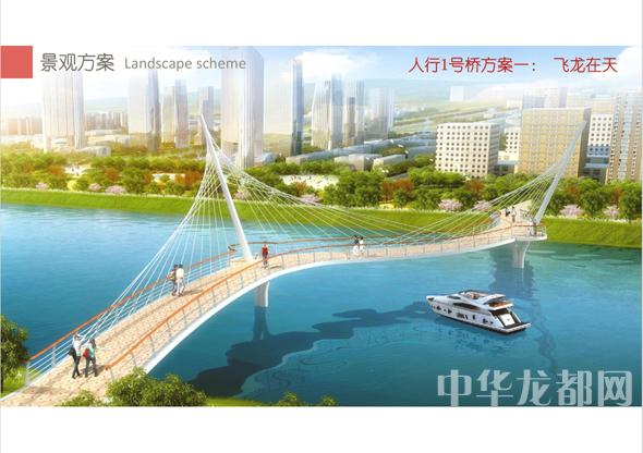 人行1號橋的設(shè)計方案有兩套,分別為“飛龍在天”和“騰飛之翼”。“飛龍在天”為雙塔斜拉橋。記者從效果圖中看到,該橋呈現(xiàn)出優(yōu)美的線條,宛如一條長龍騰空在天。“騰飛之翼”為V腿連續(xù)鋼箱梁橋。記者從效果圖中看到,橋體簡潔流暢,時尚現(xiàn)代,橋墩形成穩(wěn)固的三角形,像兩只燕子展翅高飛。