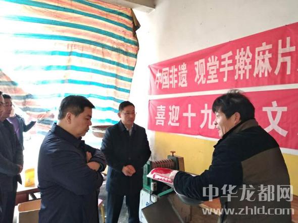 中華龍都網訊(周口報業全媒體記者 李瑞才 通訊員 孟范爭 文/圖)2月28日上午,鹿邑縣領導李剛、武衛東深入觀堂鎮調研指導文化產業發展,詳細了解了觀堂麻片、黑陶、剪紙等非物質文化遺產發掘利用情況。文化局長張鴻陪同調研。