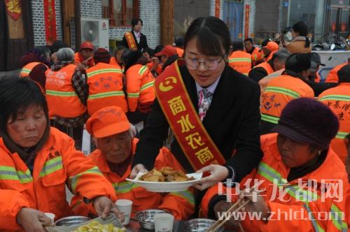 春節(jié)以來,城區(qū)人口增加,環(huán)衛(wèi)工人工作量大增,許多工人吃不上應(yīng)時(shí)熱飯。為感謝環(huán)衛(wèi)工人的辛苦工作,愛心企業(yè)商水農(nóng)商行精心為當(dāng)日值班的環(huán)衛(wèi)工作提供了免費(fèi)午餐,并為每位環(huán)衛(wèi)工作提供了一份精美禮品?!吧显?!”菜肴上夠十個(gè),農(nóng)商行工作人員端上來大盆元宵?!袄哿艘簧衔?,能在這和大家一道過元宵佳節(jié),真是太感謝農(nóng)商行的領(lǐng)導(dǎo)!”65歲的環(huán)衛(wèi)工人趙明亮吃著甜滋滋的元宵高興地說。