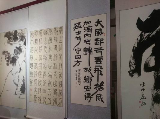 本次書畫展由中共沈丘縣委宣傳部、縣文聯主辦,縣書協、縣美協承辦,展出我縣書畫家創作的書畫精品一百多幅。書法作品五體俱全,其中范曉公、高望、李少華等人的行草書;陳國旗的小篆;李中魁、劉景的隸書;趙東明、李勇的楷書各具風采,引人注目。國畫作品花鳥、人物、山水皆有,青年畫家吳帆的《鐘馗圖》孔武有力、王志全的《翠竹》》筆墨精到、女畫家海納的《山水》氣勢磅礴,老畫家王蒞泉的《貓蝶嬉戲》功力深厚。
