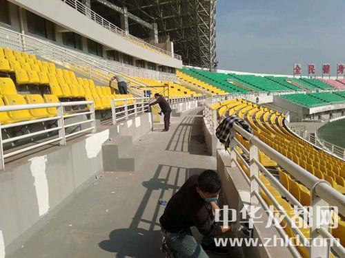 中華龍都網訊(周口報業全媒體記者 韓志剛 文/圖)為了迎接即將到來的省運會,我市最大的體育場——周口市體育中心體育場正在進行改造升級。3月13日,記者在周口市體育中心體育場看到,工人們正在維修場館內外墻,破損墻面已經重新粉刷膩子。今年9月,河南省第十三屆運動會開幕式將在這里舉行。