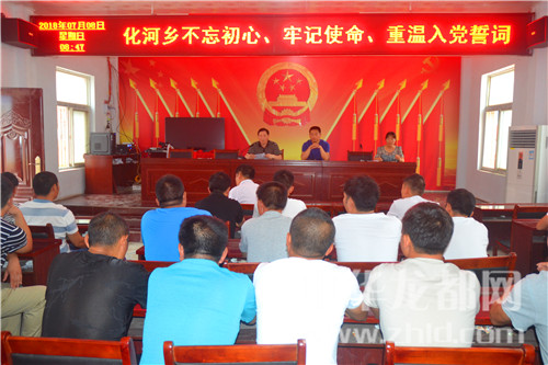 中華龍都網訊(周口報業全媒體記者 付永奇 通訊員 張長河)7月8日上午,化河鄉黨委在鄉政府會議室舉行“不忘初心、牢記使命”重溫入黨誓詞儀式。今年轉為正式黨員的高四峰、夏秋雨等19名新黨員和李俊領、史學濤等22名預備黨員參加了此次儀式。儀式由鄉黨委書記高永強主持,黨委副書記、政府鄉長賈洪濤、組織委員許艷等出席。