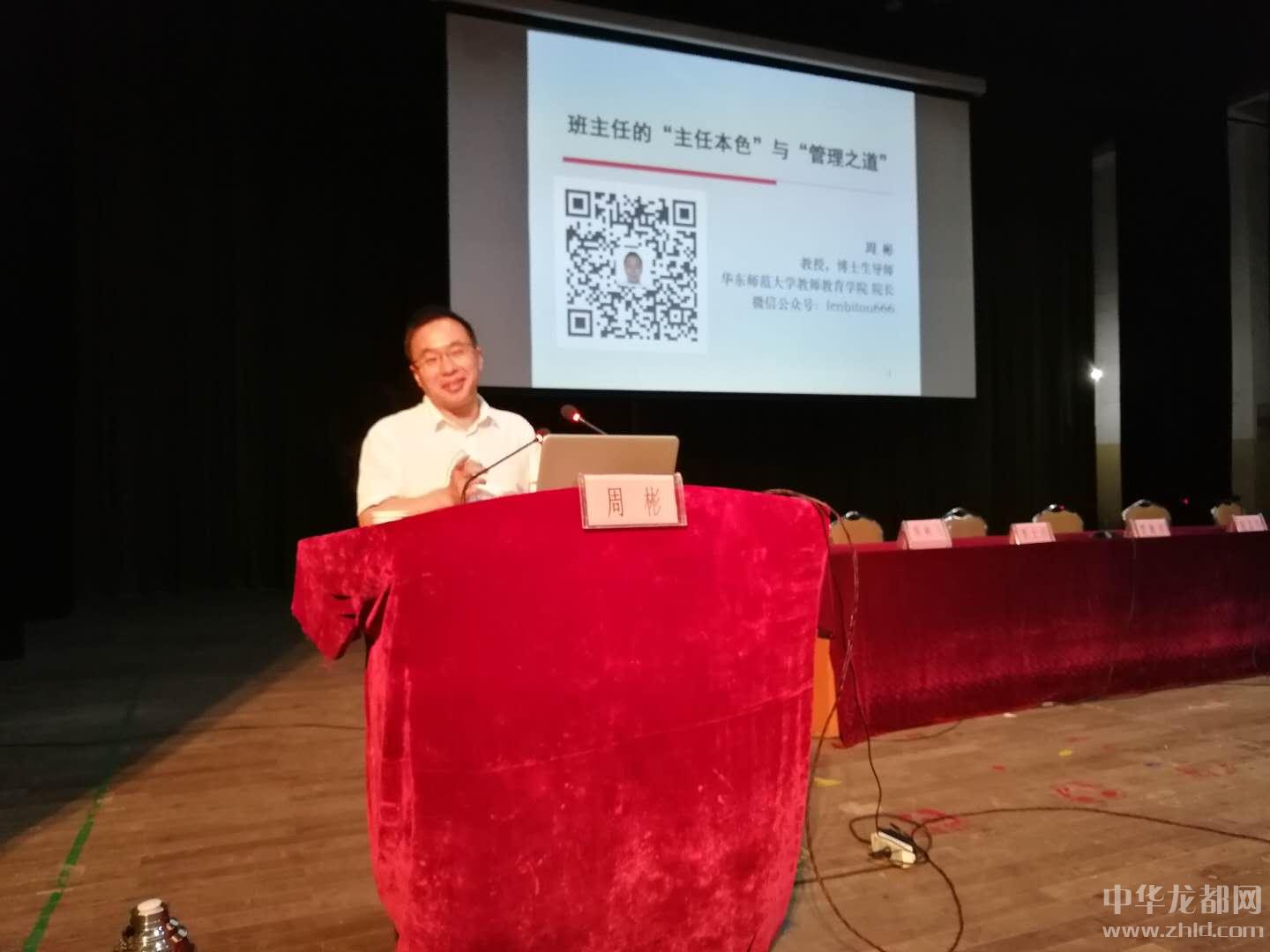 上午,簡短的開班儀式后,華東師范大學教師教育學院院長、教育學博士周彬圍繞班主任的“主任本色”與“管理之道”開講,他結合自身工作實踐經驗詳細闡述了班主任要處理的四種關系,即:班主任與老師的關系、班主任與學生的關系、班主任與學生家長的關系和班主任與班委的關系。他詼諧語言、淵博的學識贏得了參訓人員的陣陣掌聲。