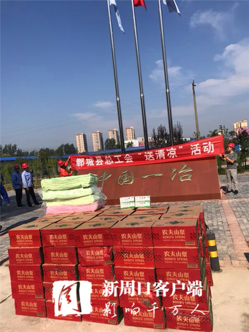7月20日上午,鄲城縣總工會開展夏季“送清涼”活動,慰問了冒著酷暑堅守工作崗位的環衛工人、執勤交警和洺河生態水系治理一線建筑工人,為他們送去了毛巾、白糖、綠豆、風油精、洗衣粉、礦泉水等防暑降溫物品。
