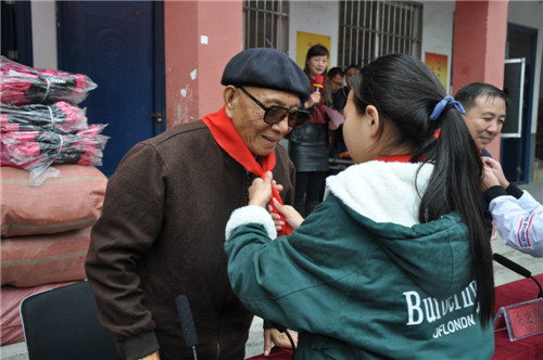“讓我們用熱烈的掌聲,向于學龍老人表示崇高的敬意。”11月5日上午,商水縣黃寨鎮埠口小學愛心助學現場,該鎮黨委書記朱宏偉和全校師生一起,向85歲高齡的于學龍表示感謝。當天上午,原建設銀行北京分行總經濟師于學龍先生輾轉千里回到故鄉,用實際行動助力家鄉脫貧攻堅,為全校370多名孩子送去書包、書法作品等愛心禮物。