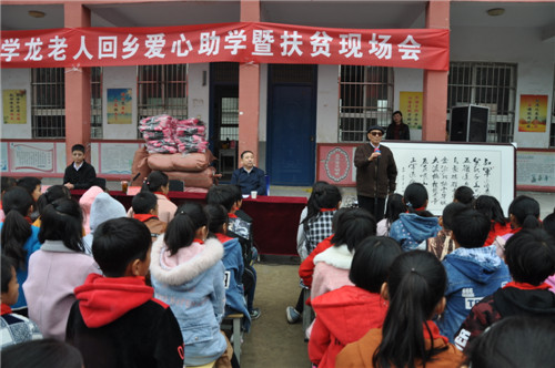 看到這一幕,黃寨鎮黨委書記朱宏偉動情地說:“讓我們全場起立,用熱烈的掌聲向于學龍老人表示崇高的敬意!于老千里迢迢回到故鄉,用一份飽含愛心的余熱,給我們帶來了溫暖,他是最可敬的人,也是最可愛的人。希望埠口小學全體師生學習于老的這種高尚情懷,辦好學校、育好人才,培養好一個個家庭的希望,助力脫貧攻堅!”
