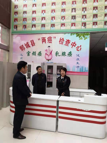 近日,鄲城縣副縣長肖煒、縣衛計委主任付登霄一行,到鄲城縣婦幼保健院檢查指導“兩癌”免費篩查工作,該院院長亢國良、院工會主席楊敏陪同檢查。