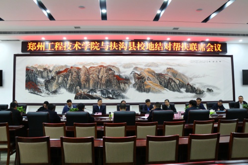 3月19日,鄭州工程技術學院與扶溝縣有關領導等聚集一堂,商談2019年“校地結對幫扶”計劃。扶溝縣脫貧攻堅和鄉村振興事業再添新動力。
