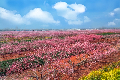 每年3月底至4月上旬,西華潁河兩岸萬畝桃花競相開放,樹下金燦燦的油菜花、綠油油的麥苗相映成趣,紅、黃、綠構(gòu)成了五彩繽紛的人間仙境,置身其中,花香沁人心脾,色彩絢麗奪目,景色美不勝收,恍如身處陶淵明筆下的“世外桃源”。