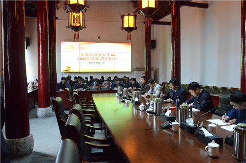 3月29日下午,鹿邑縣委辦公室黨支部召開2018年度組織生活會并開展民主評議黨員活動。縣委書記梁建松,縣委常委、辦公室主任宋濤以一名普通黨員身份參加會議。縣委辦公室機關全體同志參加會議。
