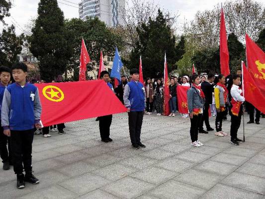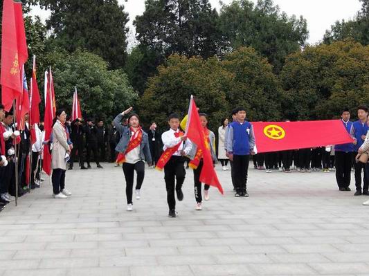 周口十九中參加周口共青團(tuán)舉辦的“青春心向黨,建功新時代”祭掃英烈活動。