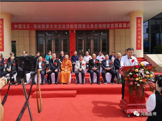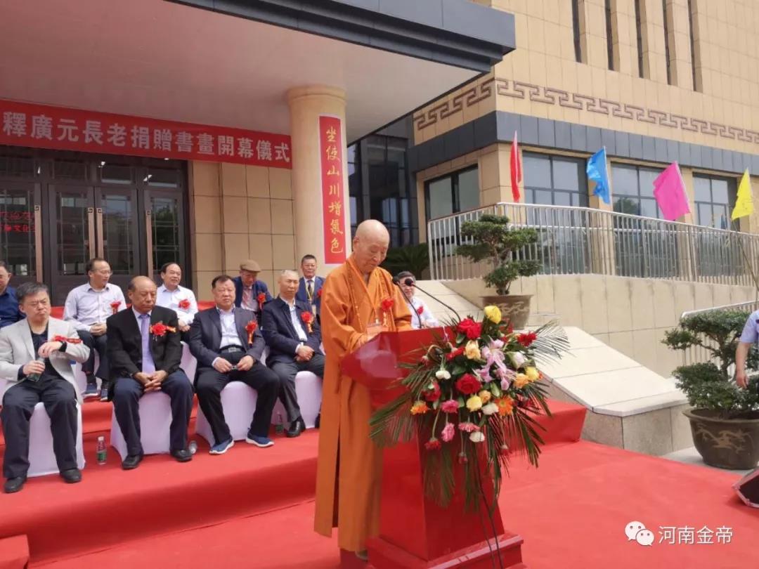 釋廣元長老在致辭中說,多年來雖身在臺灣,卻時刻心系故土,為推動兩岸同胞心靈契合、深化兩岸文化交流中貢獻自己的綿薄之力。希望此次無條件捐贈的藝術館古今名家書畫數百幅,能為家鄉文化建設貢獻微薄之力。同時提議將釋廣元藝術館更名為“沈丘藝術館”,為沈丘文化的發展繁榮注入新的生機和活力。