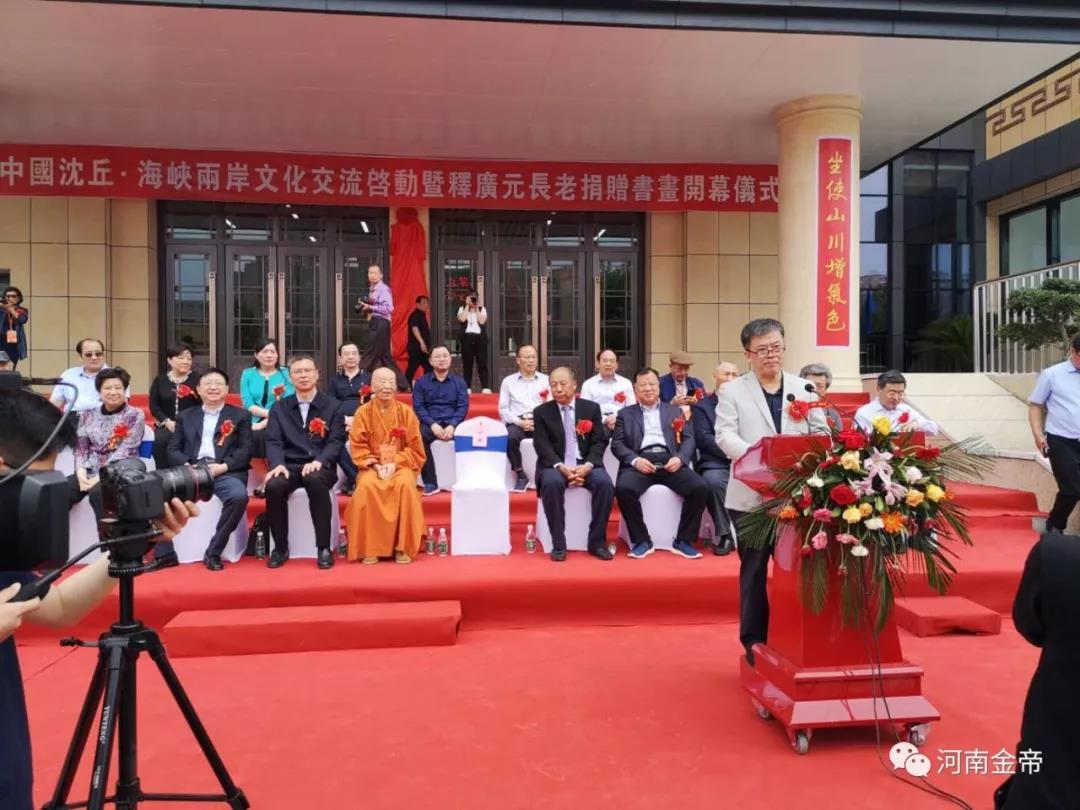 5月11日上午,沈丘縣城新區新落成的釋廣元藝術館門前熱門非常,來自海峽兩岸的各界人士相聚在這里,見證了中國沈丘·海峽兩岸文化交流暨釋廣元長老捐贈書畫展活動的開啟。