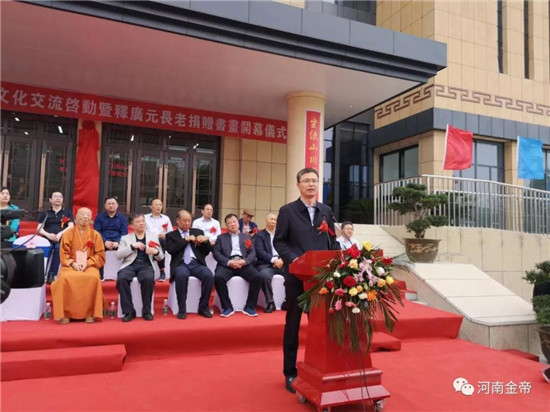 省文聯黨組書記王守國在開幕式上說,釋廣元長老不顧90多歲高齡,帶領50多名臺灣同胞,過??缃?,榮歸故鄉,出席捐贈活動,這不僅匯融了釋廣元長老的“鄉愁”情節,更是釋廣元長老不忘初心,反哺家鄉情懷的具體體現。希望越來越多的臺灣同胞蒞臨河南,感悟中原,融入中原,攜手并進砥礪前行共筑中國夢!