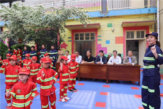鄲城縣教體局局長劉現營,副局長王平崇,縣政府督學陶永昌,黨組成員張衛華,副主任科員、辦公室主任張本寶,幼教辦主任李磊等觀看演練。