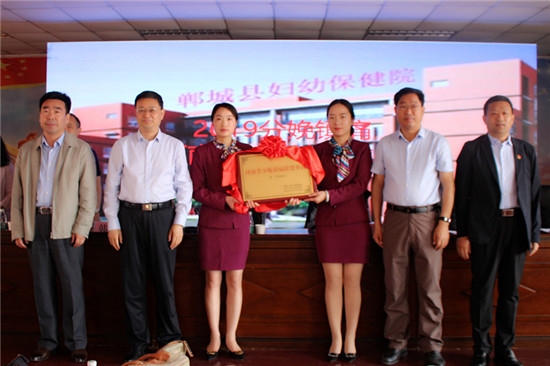 張小安與劉劍鋒、付登霄、亢國良共同為鄲城縣婦幼保健院揭牌“河南省分娩鎮痛聯盟單位”。