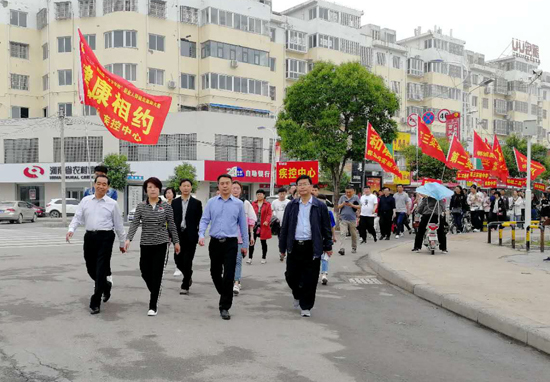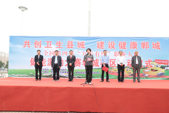 5月15日上午,鄲城縣在世紀廣場隆重舉行以“共創衛生縣城建設健康鄲城”為主題的全國第四屆“萬步有約”職業人群健走激勵大賽鄲城賽區啟動儀式??h政府副縣長肖煒,縣政府辦副主任楊培爭,縣衛健委主任付登霄、副主任禹廣民,縣疾控中心主任張吉志等出席啟動儀式。楊培爭主持啟動儀式。
