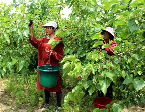 除此之外,桑果的采摘全靠人工,是勞動密集型產業,需要大量當地的勞動力,每到采摘季節,公司都會招用周邊200余名村民到種植基地務工,僅此一項,為每名務工人員人均增收3000余元。“俺在益品桑椹種植基地采摘桑椹,每天都有100多元的收入。”今年63歲的黃橋鄉孫堤村留守婦女趙美容高興的說。