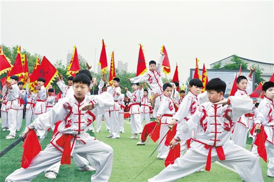 5月18日上午,為期一周的商水縣2019年“全民健身月”系列活動啟動。據悉,系列活動期間,該縣將舉辦“縣長杯”中學生足球賽、“萬步有約”職業人群健走、中小學生陽光體育運動會、周口市第四屆鞭陀交流賽等活動,全縣共有66支代表隊5000余人參與其中。圖為啟動儀式上的節目展演。記者 付永奇 攝
