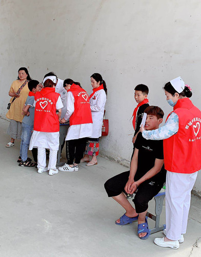 特別令人暖心的是,鄲城縣中醫院的醫務志愿者為孩子們做免費體檢。