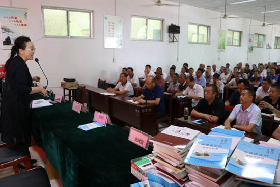 鄉(xiāng)村兩級干部學法的熱情感動了崔姝娉律師,她顧不上喝水和休息,隨機走上講臺開始講座。如何圍繞預防職務犯罪、從嚴治黨、反腐倡廉、提升自身素養(yǎng)……每一個內(nèi)容,崔姝娉都列舉了一些實際案列,并通過以案說法、以案釋法的方式,多角度重點分析了鄉(xiāng)村兩級干部多發(fā)易發(fā)違法違紀的薄弱環(huán)節(jié),提出預防違法違紀的對策和建議,讓大家筑牢法律防線,防止違法違法違紀。同時,崔姝娉律師還和在座的鄉(xiāng)村干部進行了互動,并向大家講解了調(diào)解糾紛的技巧和方法。