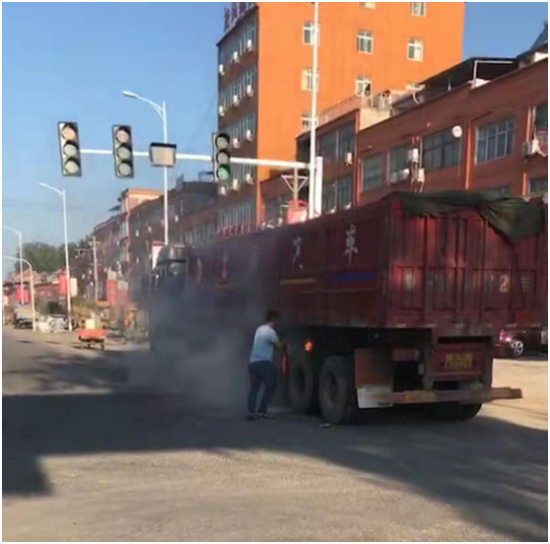 7月6日早上6時40分,一輛貨車由東至西行駛到西扶超限檢測站負責的環保檢測卡點時輪胎突然起火,執法人員發現后,立即用車載喇叭喊話提醒司機停車,此時車輛正好停在值勤卡點紅綠燈處,一旦火勢不受控制,將給司機及周邊群眾帶來不可預測的危險與損失,帶班站長李建東一邊組織人員進行救火,一邊通知站長劉洪亮。得到警情后,劉洪亮站長立即組織增援,同時指令張光輝、劉伯倫駕駛站內高壓撒水車迅速趕往事故現場,經過共同努力,著火處被撲滅,避免了一場火災事故的發生。事后,貨車司機十分感動,拉著執法人員的手深表謝意。