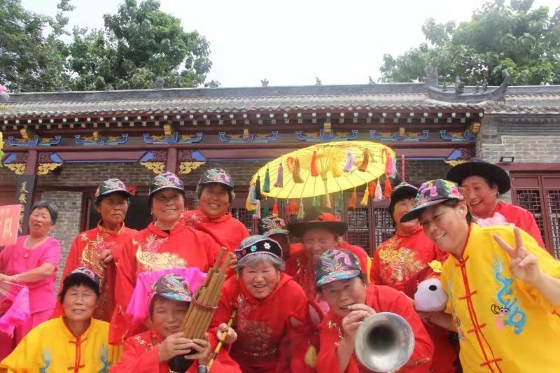 歡快的音樂響起,一群群老人們載歌載舞,翩翩而來。她們有的劃著旱船,有的揮著鞭子,有的叼著煙斗,有的抬著轎子,一招一式,都是那么專業(yè)。