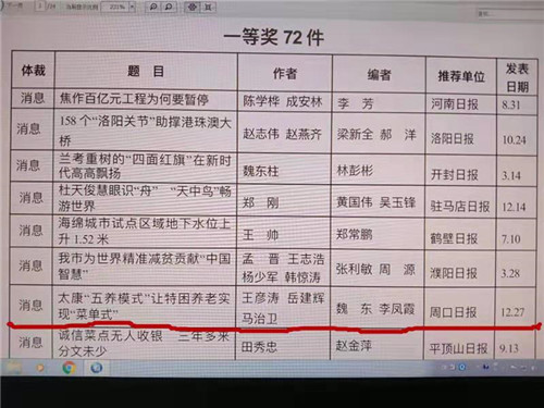 據介紹,本屆河南新聞獎獲獎作品具有“把握時代脈搏 謳歌時代精神”“反映重大主題 積極服務大局”“講述中國故事 彰顯主流價值”等特點,主題深刻、事實準確、文風生動、表現新穎,充分反映我省新聞戰線積極宣傳報道黨的十八大以來我省發展的歷史成就、歷史變革,報道我省各行各業改革開放的豐碩成果和感人事跡,特別是聚焦打贏精準扶貧攻堅戰,形成宣傳的強大聲勢。作品堅持正確的輿論導向、唱響主旋律、大力宣傳社會主義核心價值觀,為新時代中原更加出彩提供強有力的輿論支撐和良好的輿論氛圍。《太康“五養模式”讓特困養老實現“菜單式”》具有“重大題材”“重大影響”“重大意義”等特點,經過專家層層評審,最終在眾多參評作品中脫穎而出,一舉奪得了河南新聞獎一等獎。