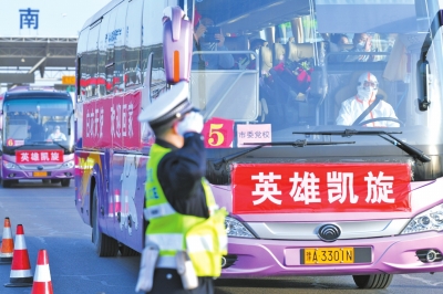 當醫療隊員們列隊走向大巴車時,有迎接人員大聲喊道:“請你們喝胡辣湯!”