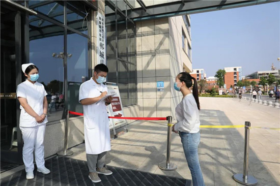 “您好,您哪兒不舒服啊?近期去過疫區(qū)嗎?”鄲城縣第二醫(yī)療健康服務(wù)集團(tuán)鄲城縣中醫(yī)院門診樓前預(yù)檢分診入口處,分診護(hù)士正仔細(xì)詢問一名就診患者。“我有點(diǎn)發(fā)燒、咳嗽,10天前從某省回來。”分診護(hù)士經(jīng)詳細(xì)詢問其流行病學(xué)史,在做好登記后,護(hù)士為患者更換醫(yī)用外科口罩,并引導(dǎo)患者到發(fā)熱門診......這是9月8日下午,在鄲城縣第二醫(yī)療健康服務(wù)集團(tuán)鄲城縣中醫(yī)院開展的秋冬季新冠肺炎疫情防控應(yīng)急演練的一幕。