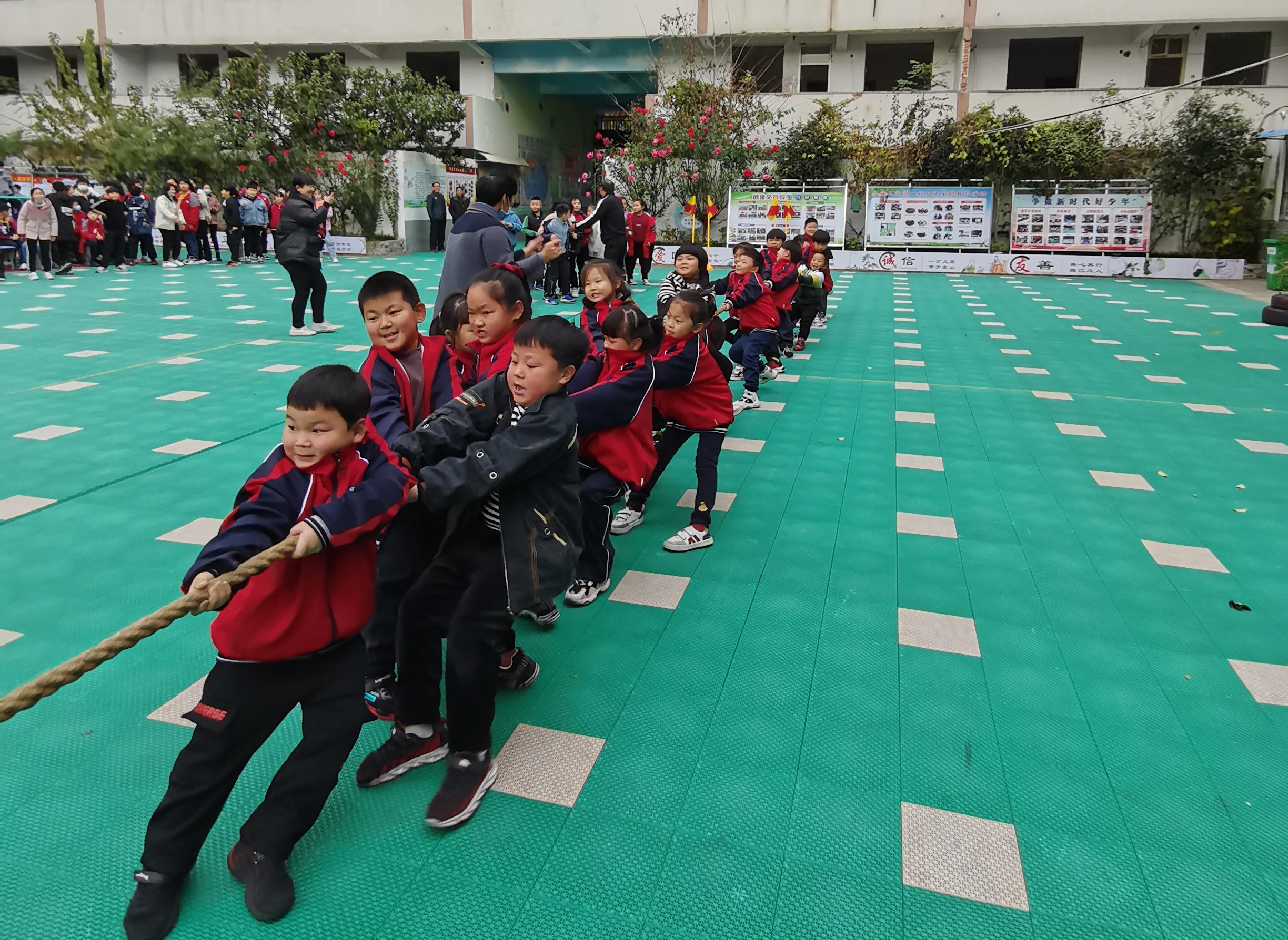 “加油、加油”在此起彼伏的歡呼和加油聲中,拔河比賽開始啦!同學們在克服困難、順利完成比賽后體會到發自內心的勝利感和自豪感,獲得人生難得的團隊體驗。小運動員們做到“勝不驕,敗不餒”,充分展示了川匯區青少年學生昂揚向上的精神風貌。