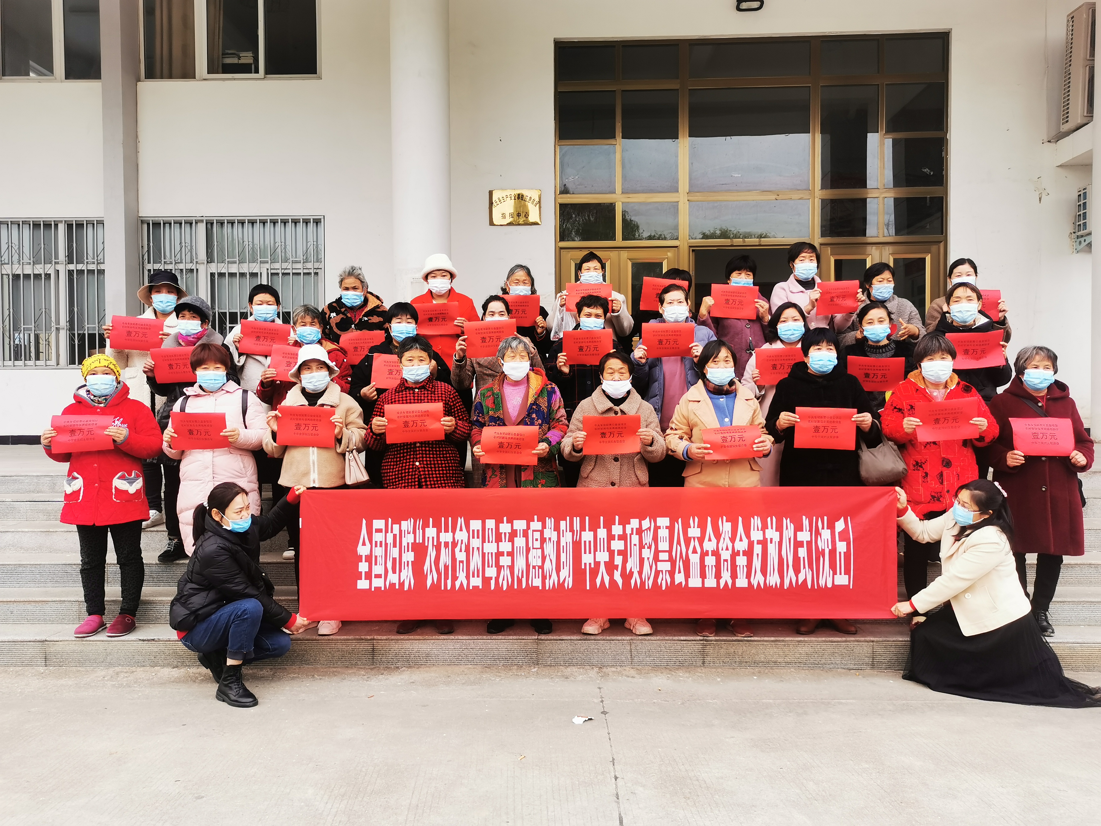 冬日送關愛,天冷心意暖。11月20日,沈丘縣婦聯工作人員在中國福利“農村貧困母親兩癌救助”中央專項彩票公益金資金發放現場,為來自沈丘縣付井、趙德營、周營、卞路口、北城等12個鄉鎮(辦事處)的李秀芳、黃雪華、王麗芳、盧彩迎、張玉霞等31名患“兩癌”的貧困婦女,每人發放了1萬元救助金,把黨和政府的關愛和縣婦聯“娘家人”的溫暖及時送到她們手中。