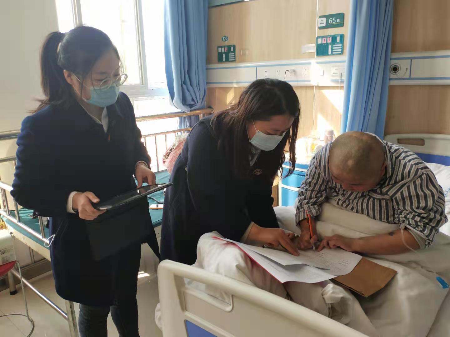 為了更好地服務群眾,沈丘縣婦聯堅持特事特辦,針對正在縣人民醫院腫瘤科接受治療的卞路口鄉小郭莊村的盧彩英,縣婦聯副主席段金花聯系了中銀富登村鎮的工作人員,到病房現場為其辦理了領取救助金的相關手續。