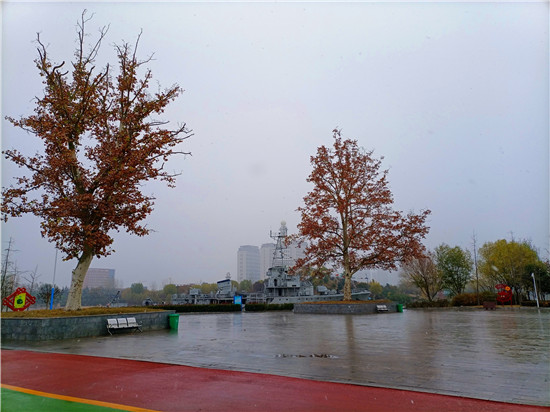 昨天剛過完小雪節氣,今天就下了一場雪。這場雪像是如期而至的約定,又似突如其來的驚喜,妝扮了整個城市。飛揚的雪花落到地上,草葉上,枝頭上,瞬間融化成晶瑩的水珠,滋潤著大地和萬物,形成了秋與冬交接的獨特景色。