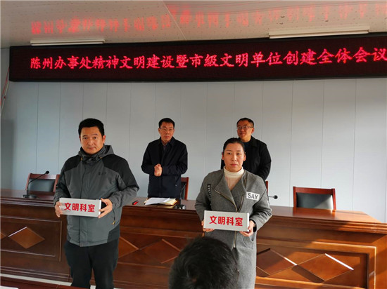 疫情防控辦公室、黨政辦公室獲得“文明科室”稱號;王志國、史路路獲得“文明職工”稱號;鄒亮家庭、武志強家庭等6個家庭獲得“文明家庭”稱號。大會為獲獎集體和個人頒發了獎牌、榮譽證書和獎品。取得榮譽的先進集體和個人,集中展示了陳州辦事處的文明形象和干部職工的職業道德、家庭美德和個人品德,為文明單位創建增添光彩。