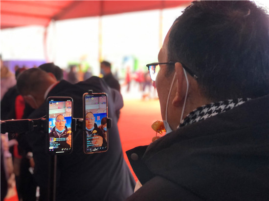 28日早上7時(shí)許,周口網(wǎng)紅俱樂(lè)部的網(wǎng)紅們和工作人員就開(kāi)始為今天的直播做準(zhǔn)備,早早把直播設(shè)備搬到現(xiàn)場(chǎng),進(jìn)行調(diào)試。10時(shí)左右,周商產(chǎn)品展示展覽活動(dòng)現(xiàn)場(chǎng)人頭攢動(dòng),熱鬧非凡,來(lái)自周口本地的9位網(wǎng)紅們陸續(xù)架好手機(jī)直播設(shè)備,打開(kāi)補(bǔ)光燈,開(kāi)始直播。現(xiàn)場(chǎng)的9位網(wǎng)紅各有特色,有打扮時(shí)髦的美女主播,有歌聲出眾的中年大叔,年齡最大的網(wǎng)紅是今年65歲的鹿邑大爺。網(wǎng)紅們一手拿著周口的蜂蜜、空心掛面、麻花、粉條、醬豆等土特產(chǎn),一邊對(duì)著手機(jī)屏幕里的粉絲熱情地展示和介紹起來(lái),有的還直接進(jìn)行現(xiàn)場(chǎng)吃播,不時(shí)與網(wǎng)友進(jìn)行唱歌、聊天互動(dòng),吸引了不少行人前來(lái)觀看?!霸瓉?lái)在抖音上看過(guò)網(wǎng)紅帶貨,但沒(méi)見(jiàn)過(guò)真人, 今天終于見(jiàn)到真實(shí)的網(wǎng)紅了!感覺(jué)很有意思!”前來(lái)觀展的市民劉女士說(shuō)。