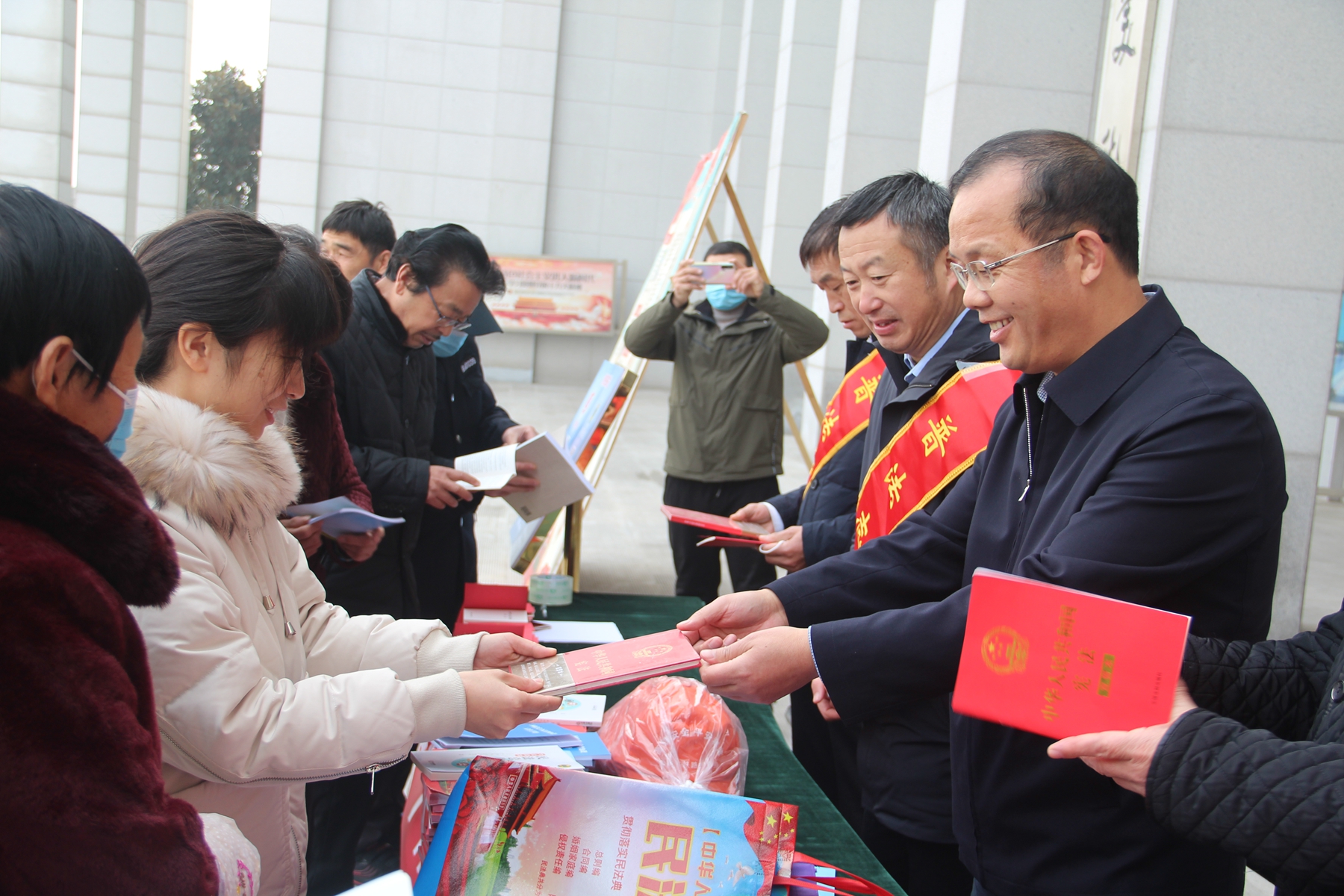 12月3日,在第七個國家憲法日來臨之際,周口市委政法委、周口市法學會、川匯區法學會,聯合團體會員單位市博物館、市文物保護中心開展憲法、國家安全、反邪教宣傳活動,讓遵守憲法和法律在全社會成為習慣、成為自覺。周口市委政法委副書記張曉、二級調研員朱建民參加普法宣傳活動。