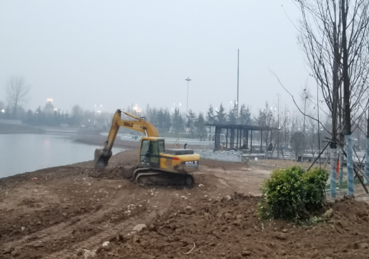 12月28日下午,洼沖溝治理工程現場,人力、機械,實行交叉施工,加快工程建設進度。