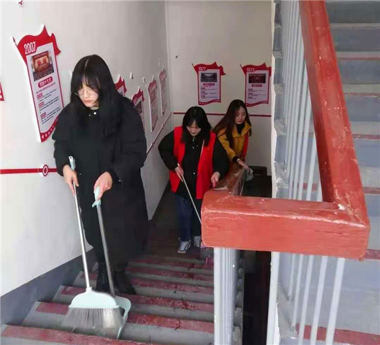 活動現場,青年志愿者身穿紅馬甲,拎起掃把、拖把、抹布等工具,全力投身到清潔行動中,幫助社區清掃衛生死角、清運垃圾雜物、清潔樓道窗臺等,以青春之力積極創造干凈、整潔的節日環境。