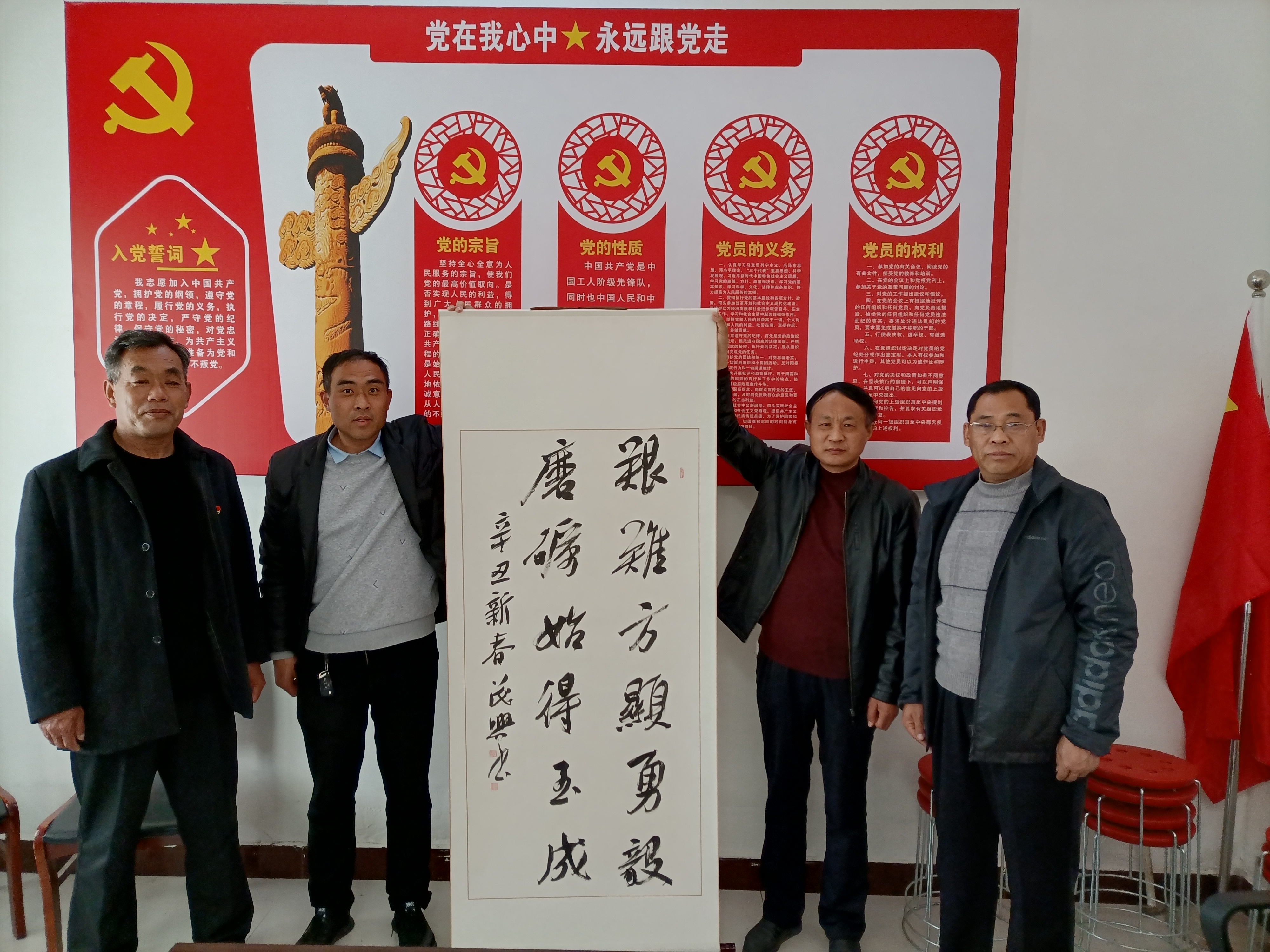 參與活動的書法家們都來自于太康縣中書協和省書協會員,書寫內容全部來自于習近平總書記的經典講話,裝裱之后送到全縣榮獲省、市、縣先進黨支部的行政村,內容突出新時代的“新”,涉及“永遠跟黨走”,成為宣傳黨建知識的新載體、教育群眾干部的新陣地。