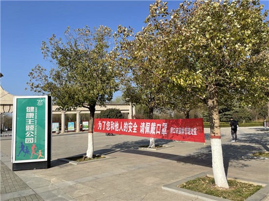 春色正宜結伴行。2月19日,記者來到周口公園,在公園門口,就看到了“進入公園請佩戴口罩”的宣傳標語。進入公園,藍天碧水映入眼簾,微風輕拂,花香陣陣,放眼望去,遠處還有孩童在放風箏,一派閑適景象……