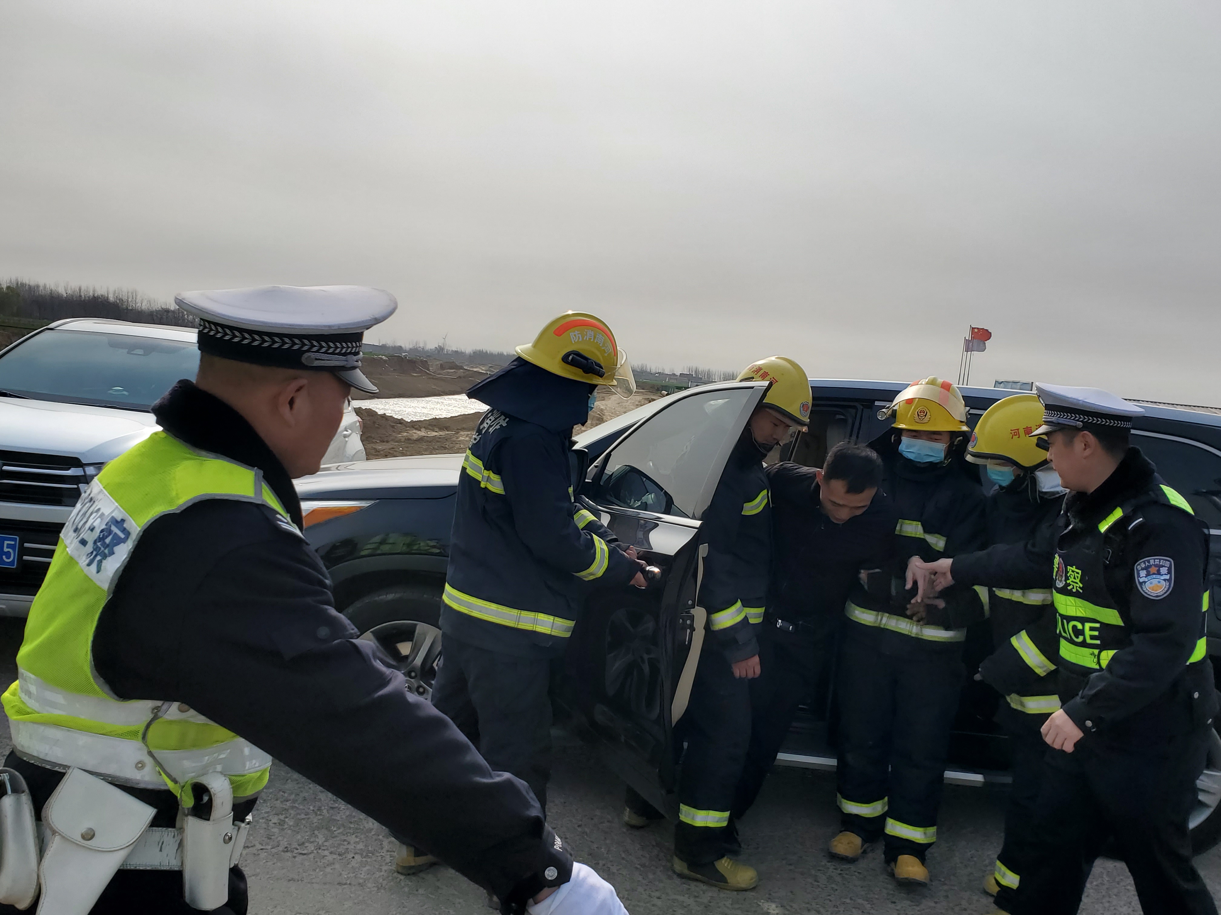 演練模擬2月23日10許,在G220國(guó)道河南安徽二省交界友誼橋處,二輛越野車(chē)在道路中心線處相撞,二輛車(chē)駕駛?cè)祟^部受傷流血,車(chē)門(mén)被卡,車(chē)輛起火冒煙道路嚴(yán)重?fù)矶隆⑶闆r危急。接到報(bào)警后,交警部門(mén)立即向上級(jí)進(jìn)行匯報(bào),“四位一體”聯(lián)動(dòng)工作機(jī)制隨即啟動(dòng),相關(guān)部門(mén)迅速趕往現(xiàn)場(chǎng)開(kāi)展事故處置和救援工作。同時(shí)會(huì)同交警、屬地派出所,消防救援、醫(yī)療救護(hù)部門(mén)一起協(xié)助開(kāi)展相關(guān)工作。隨后事故民警按照現(xiàn)場(chǎng)勘查要求,迅速對(duì)現(xiàn)場(chǎng)進(jìn)行勘查、拍照,提取相關(guān)證據(jù),配合搶險(xiǎn)、醫(yī)療施救各部門(mén),并對(duì)現(xiàn)場(chǎng)遺留物品進(jìn)行清理、登記并妥善保管??辈榻Y(jié)束后交警部門(mén)解除警戒區(qū),將車(chē)輛疏導(dǎo)、分流完畢后撤離現(xiàn)場(chǎng)。