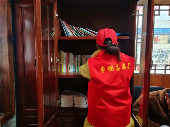 上午9點,天空中偶有零星小雨,市民驛站里卻有幾位市民正在這里讀書,古色古香的書柜,整齊地擺放著各類書籍,文學、百科、養生書籍俱全。周口市慈孝文化促進會的志愿者每天都在值班,隨時打掃衛生,為市民提供力所能及的幫助。