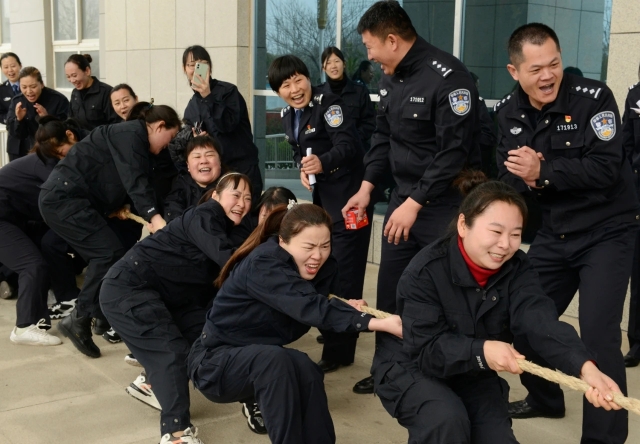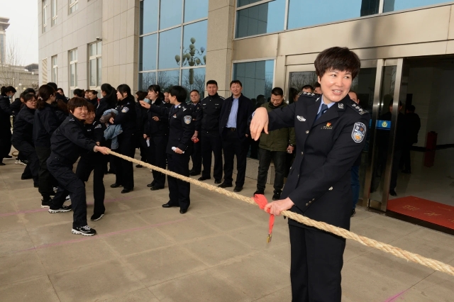 此次活動設置搶凳子、拔河比賽、蒙眼擊鼓等考驗個人體力、智力和團隊協作的運動項目,局機關、治安、刑偵、交警四個代表隊參加了活動。上午10時,趣味活動在女警的歡聲笑語中拉開序幕。在搶凳子游戲環節中,伴隨著歡快的鼓聲響起,大家緊盯目標,奮力搶占座位,動作迅速、靈活;在蒙眼擊鼓游戲環節中,考驗著參賽選手的自身平衡,大家小心翼翼地尋找擊鼓終點,一個個呆萌的表情惹得在場觀眾開懷大笑;拔河比賽更是考驗著一個團體的協作能力,大家擰成一股繩,拼盡全力,加油聲、吶喊聲、歡笑聲不絕于耳,此時的女警們凝聚力和戰斗力“爆表”,比賽氛圍愈加濃厚。參賽女民警們齊心協力,奮勇爭先,團結拼搏,一個個看似簡單卻需要精心配合的項目把趣味運動會推向一個又一個高潮,整個比賽精彩紛呈、掌聲不斷。經過激烈角逐,分別評選出各個項目的個人第一、二、三名,團體第一、二、三名,局領導為獲獎集體和個人現場頒發了榮譽證書和獎品。