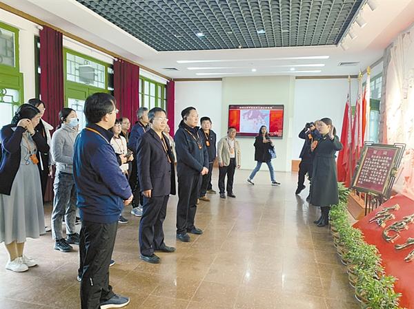 在紅安縣列寧小學(xué)舊址,周口報(bào)人在講解員的帶領(lǐng)下,學(xué)習(xí)了紅安兒女“一要三不要”“一圖兩不圖”的革命信念,“樸誠(chéng)勇毅、不勝不休”的紅安精神。在昔日的教室里,周口報(bào)人齊唱《八月桂花遍地開(kāi)》,致敬紅安革命烈士不怕?tīng)奚⒂掠诙窢?zhēng),為新中國(guó)解放事業(yè)拋頭顱、灑熱血的大無(wú)畏精神。