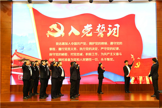 活動(dòng)中,公司青年人與歷史對(duì)話,2020屆新入職員工演繹舞臺(tái)劇《紅色的起點(diǎn)》,重現(xiàn)了百年前五四運(yùn)動(dòng)的激昂歷史;2021年優(yōu)秀青年員工培訓(xùn)班的30名青年共同唱響《少年》,抒發(fā)了“中國(guó)共產(chǎn)黨立志于中華民族千秋偉業(yè),百年恰是風(fēng)華正茂”的豪情。與“自己"對(duì)話,通過掃描大屏二維碼發(fā)起話題實(shí)現(xiàn)互動(dòng),20+、30+青年員工代表袁夢(mèng)、田韋丹、麻奇朋現(xiàn)場(chǎng)深情發(fā)言,與40+勞模先進(jìn)代表肖杰夢(mèng)幻聯(lián)動(dòng),暢談憧憬、解惑、期許,實(shí)現(xiàn)了信念、信心、信仰的傳承。與榜樣對(duì)話,解除自己在工作、生活方面的困惑和疑問,表示要對(duì)標(biāo)先進(jìn)學(xué)習(xí)榜樣,干一行,愛一行,精一行,只爭(zhēng)朝夕,不負(fù)韶華。最后,2020年加入黨組織的青年黨員上臺(tái)宣誓,以歌唱的形式重溫入黨誓詞。