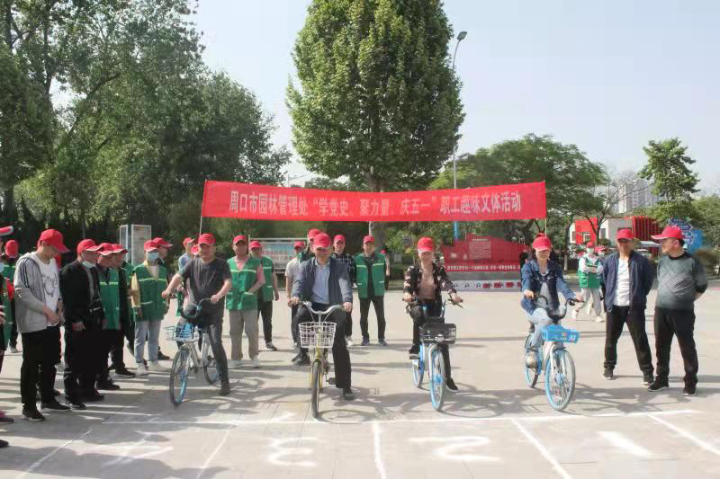 為慶祝“五一”國際勞動節,喜迎“五四”青年節,4月30日上午,周口市城市管理局園林管理處在周口公園開展“學黨史、聚力量、慶五一”職工趣味文體活動,吸引70余名黨員干部職工參加。